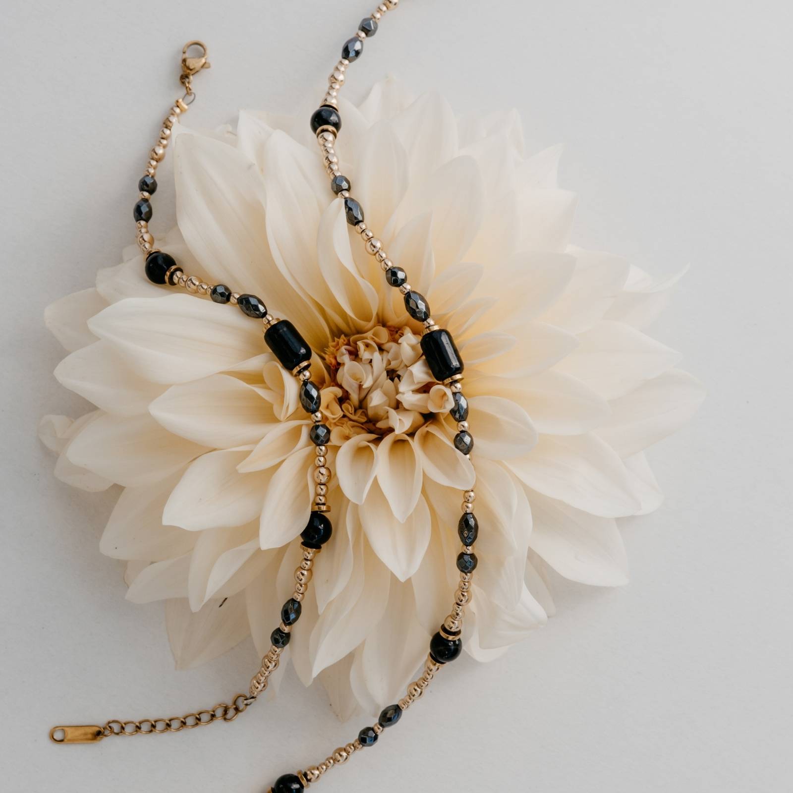 Połączenie ochronnego czarnego turmalinu, stabilizującego hematytu oraz kojącego czarnego agatu tworzy elegancką, ponadczasową biżuterię, która nie tylko podkreśla styl. Ta harmonijna synergia wspiera poczucie bezpieczeństwa, chroni przed negatywnymi wpływami i pomaga zachować wewnętrzny spokój nawet w wymagających sytuacjach.
